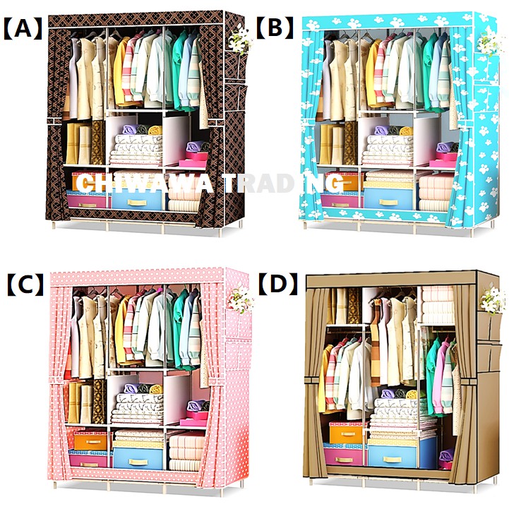 Sale Curtain Multipurpose Diy Wardrobe Almari Baju Rak Baju Kain Kanvas Shopee Malaysia